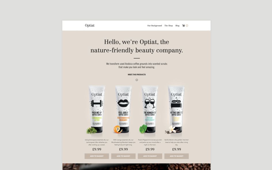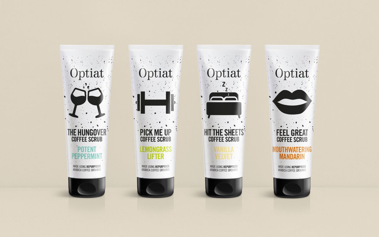 London agency Studio More has helped make one man's trash into another's treasure, creating the visual identity and brand strategy for Optiat, an "upcycled" coffee body scrub made using discarded coffee grounds. Dubbed ‘Nature Friendly Beauty Company', Optiat's look aims to "differentiate it from other coffee scrubs", according to Studio More.