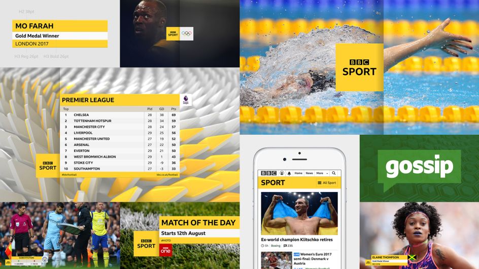 "BBC Sport is the first brand to introduce the new BBC font family, BBC Reith. To implement it with consistency, we applied BBC GEL grids across all platforms, including broadcast. The new system creates a cohesive presentation for the first time across broadcast, app and responsive web."