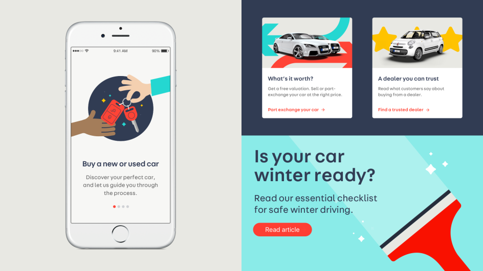 You can expect a wider colour palette which appeals to a broader audience while building on the core blue and red that we've all come to associate with Auto Trader. There's more of an emotive brand with product-led photography, helping the audience to picture themselves using the vehicles. Studio Output even added motion across the brand, adding to the overall effect. Here's just a peak at the final brand. See it in full at autotrader.co.uk.