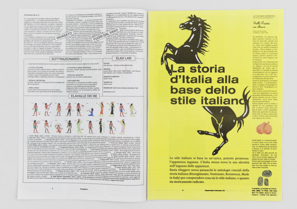 Eschewing both of these tried and tested pathways is Studio Temp, an agency based in Bergamo, Italy, which has been working with beer brand Birrificio Indipendente Elav since 2014. Studio Temp was tasked with the art direction and graphic design for Osservatore Elaviano, a newsprint magazine published by the brand to be distributed to several pubs and beer shops across Italy.