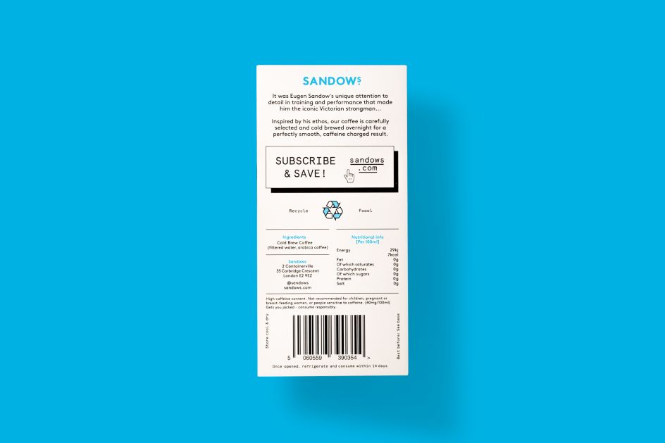 Launched in 2014 as the UK’s first cold brew coffee brand, Sandows has gone from strength to strength. In particular, the company has been moving outside of the small independent coffee scene and the London bubble, as the appeal of quality ready-to-drink coffee has grown around the UK. And so they turned to Studio Thomas to making Sandows a brand for everyone.