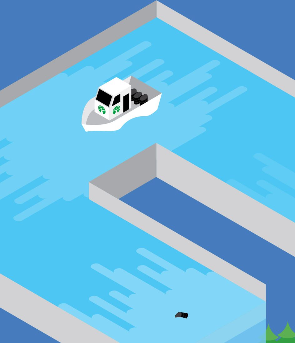 Mark explains: "The client requested that the artwork include some kind of puzzle that could be navigated via the assistance of Dsposal. They had referenced a classic piece by MC Escher, Waterfall, featuring an infinite aqueduct. The continuous stream connected with their philosophy there is no such thing as throwing waste 'away', it goes somewhere. While the op-art style conveyed the puzzle element. This was particularly pleasing for me since Escher is my favourite artist.