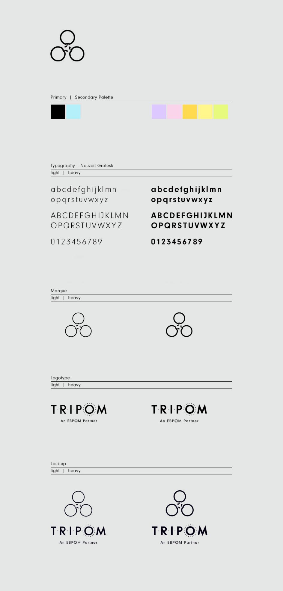 For the logotype, a bespoke uppercase lettering was developed with the subtle addition of dots to convey its acronym nature. The holding organisation, EBPOM, had also asked that the identity conveyed a connection to its brand. To achieve this, Mark added a circle of dots around the 'O' in its logotype, which was "the best compromise available to appease all parties".