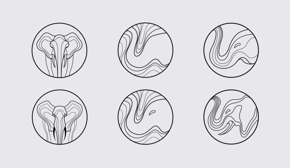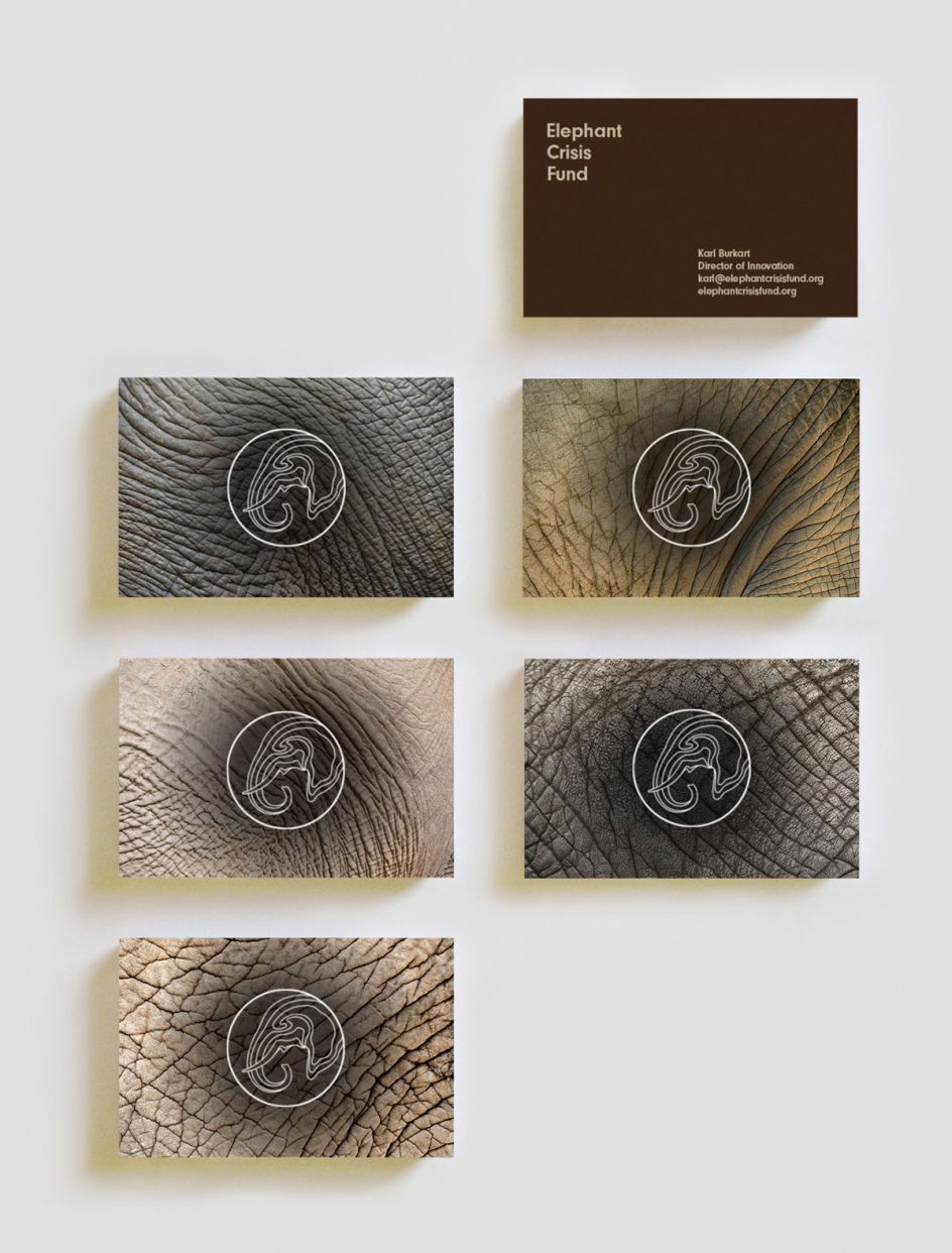 Following Mark's advice, the Foundation agreed to the rounded marque for all three funds and so the Manchester designer developed various mock-ups to ensure it was sufficiently versatile across all media. Looking next at the identity for the Elephant Crisis Fund, it was here that a further connection between the elephants and their habitat emerged, adding an extra layer to the identity.