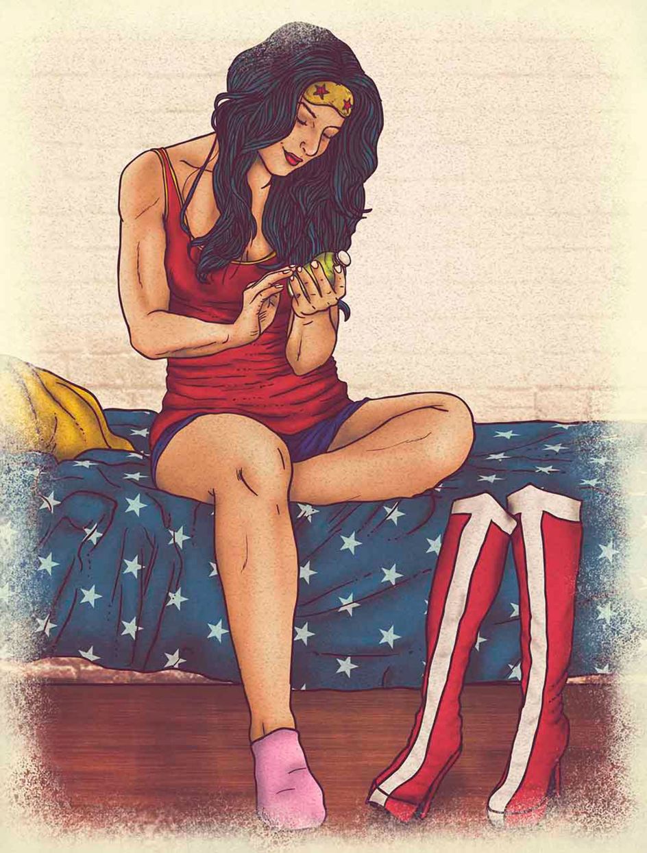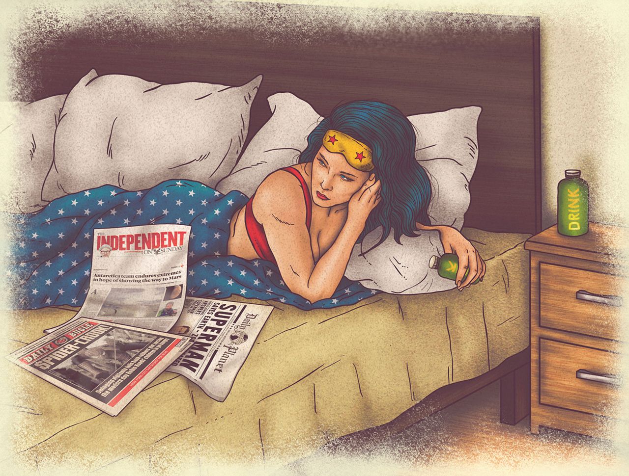 To celebrate the release of Superman Vs Batman – and, most importantly, the debut big screen appearance of Wonder Woman – Brazilian illustrator Fulvio Obregon joined forces with healthy juice brand Plenish to create a comical series of illustrations, imagining what the superheroes might get up to during their spare time.