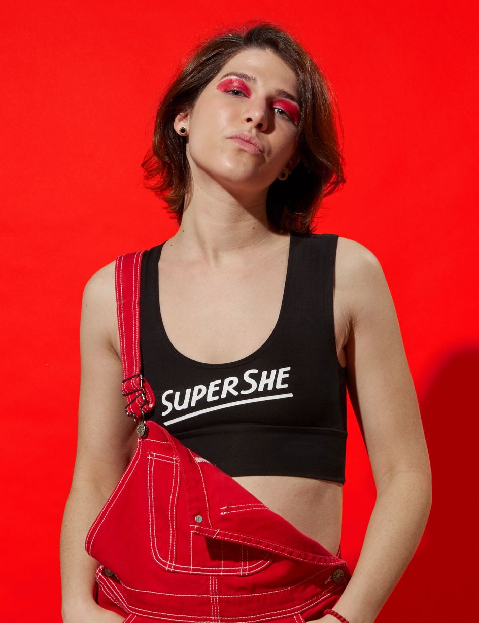 Jessica Walsh's studio worked across creating the branding, strategy and merchandise designs across clothing and beauty/bath products for SuperShe; as well as on the app creation.