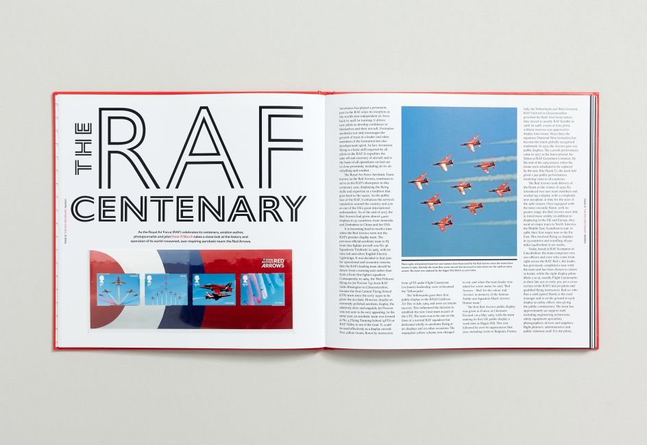 “Traditionally the stamps are tipped into the rear pages of each chapter and sit alongside an interview with the stamp issue's designer. We decided to turn that tradition on its head. In our design, the stamps sit prominently on the opening page of each chapter, giving them the heroic status they deserve.”