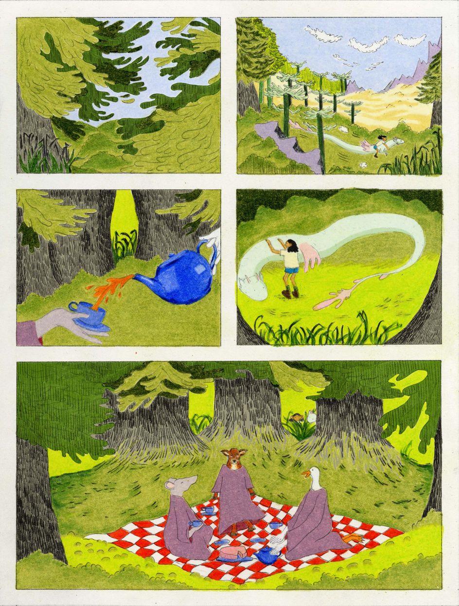 It's a beautiful conclusion to a beautiful book and ties into the ideas that Swayam had while making Greenhouse. "I wanted to talk about something that I struggled with but in a light, slightly strange/absurd way," she explains. "I had a few tumultuous years with bad familial, platonic and romantic relationships, depression, and a lot of unanticipated constant change.