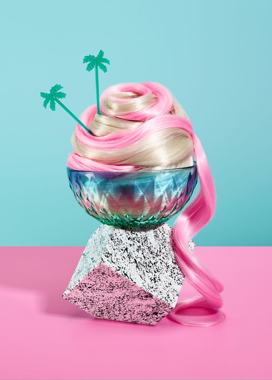 "Lately I have noticed a big connection between the colours and shapes used in hairstyles and those found in bakeries and ice cream. In this self-initiated series, I explored the similarities of these aesthetics by unifying them in lighthearted images. The idea of playing imaginary children's games with food brings life and a bit of whimsy to these playful combinations of props, textures and colours." Discover more at palomarincon.com.