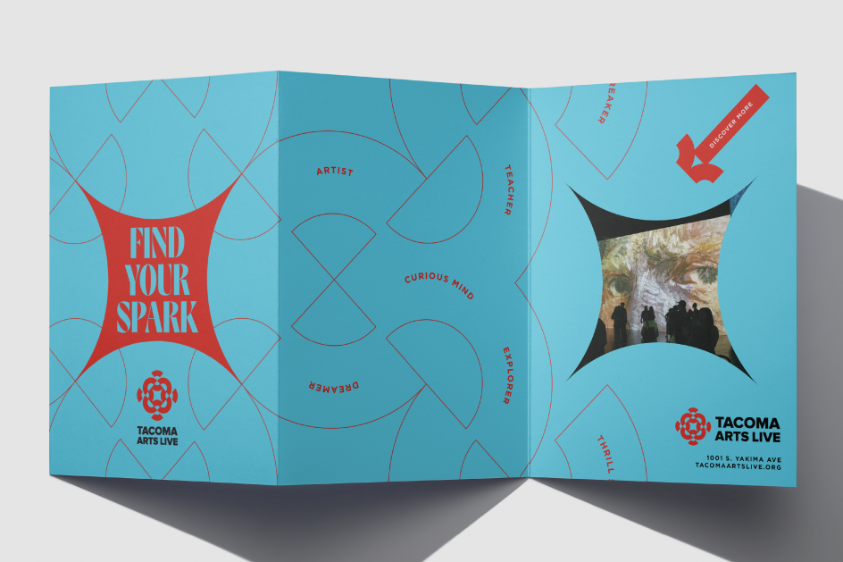 "Being allowed to continue to be a true creative partner for Tacoma Arts Live after four years was an affirming feeling," he says. "But it was also great to confirm how strong the original brand was in the first place, allowing it to be the foundation of this new campaign. Things may be changing in the arts, but this new expression of their brand proves that change can also open up all kinds of exciting creative possibilities.