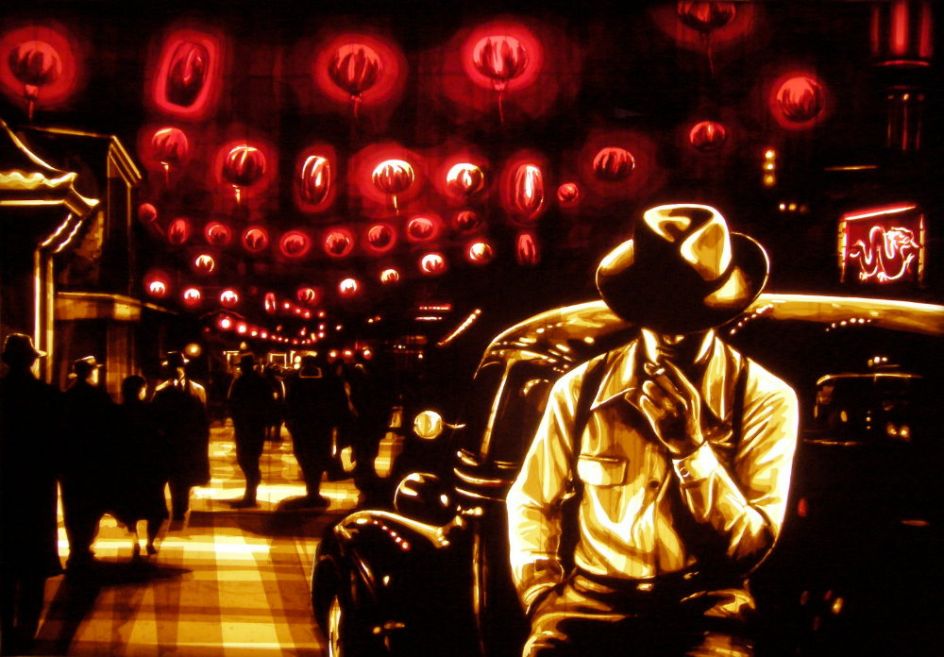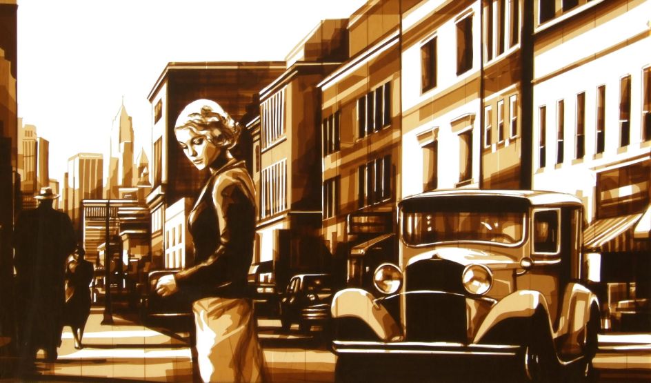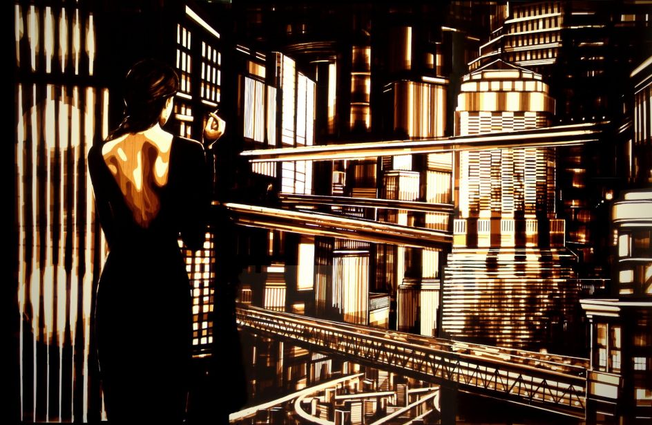 When you first come across the vintage, dark and sultry artworks of Dutch artist Max Zorn you assume they are paintings, created using pastels, watercolours or perhaps oils in sepia hues. Instead, he adopts a most unusual technique by cutting and pasting pieces of brown masking tape, which he then sticks as layers to thin acrylic glass sheets.