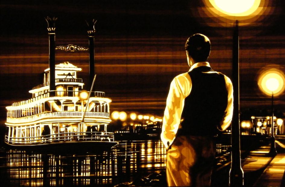 Using LED light behind the glass as a guide, he can see how his work is progressing. Talking about his process, he said: "The more layers of tape I add, the darker the shades on the artwork become. The different shades of brown allow me to shape out my scenes and portraits. I use an ordinary scalpel or X-Acto knife to cut and shape the layers of tape. The last thing I need is a lit window."