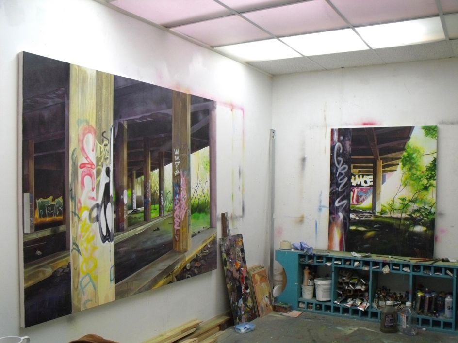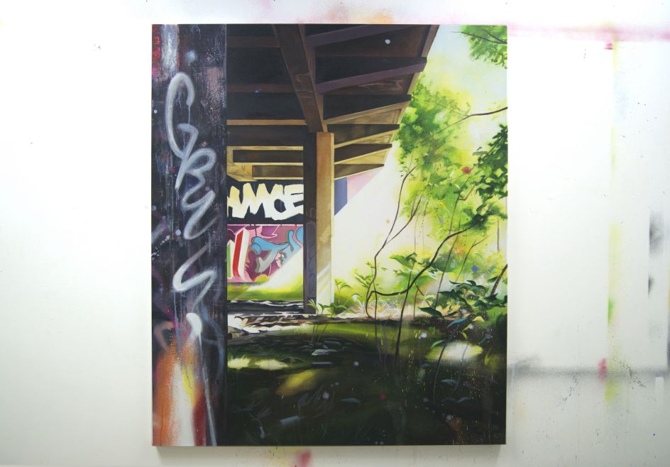 With his new body of work, artist Ross M Brown has set out to find a contemporary form of Terra Incognita; uncovering a landscape so proximate and everyday it tends to become unnoticed and unknown through sheer familiarity. Approaching subject matter collected in Glasgow and Edinburgh; motorway underpasses, building sites and billboards became the focal point for his painterly exploration.