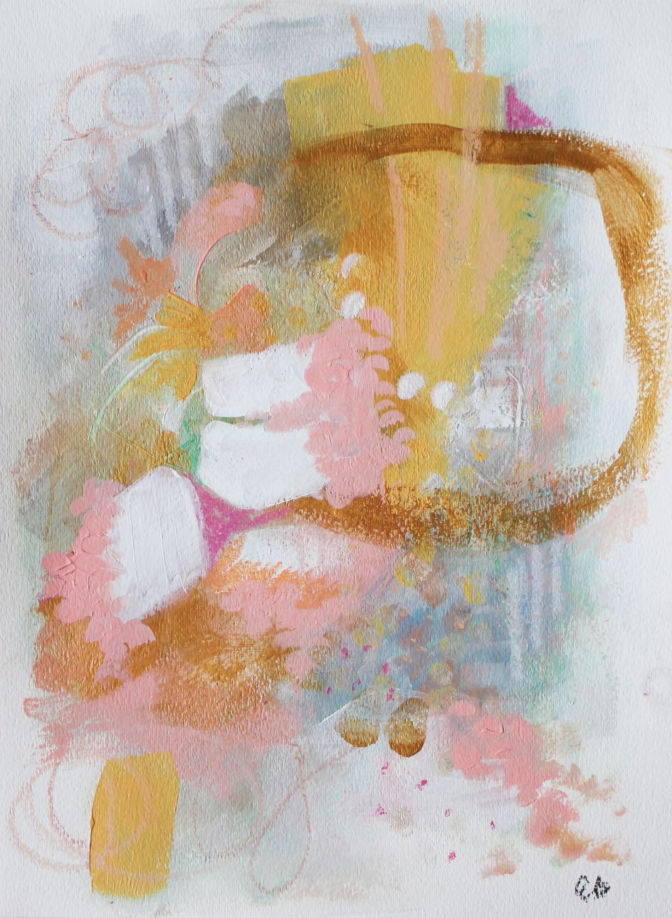 "My paintings are fun, organic and emotional," Beck continues. "They emerge through the process of transitioning between large soft, brush strokes and very tiny design details (I'm sure that's the trained graphic designer influencing my work). I love when I discover things by accident and typically let this dictate the direction of the painting. I hope to give the viewer just enough to interpret my work in his or her own unique way."