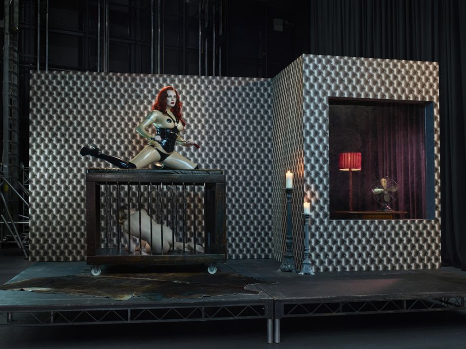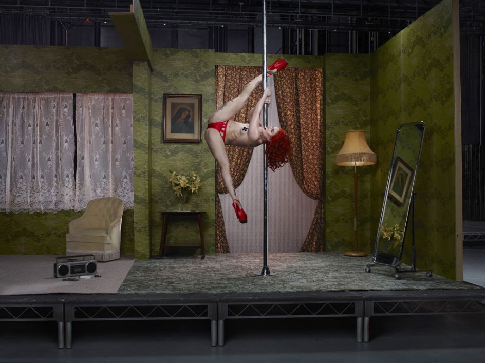 Following a year of castings, Julia narrowed her choice of models down to fifteen. Among the subjects are aerial artists, a ping-pong girl, a dominatrix, an escort, and webcam and porn stars. Each image depicts a nude model provocatively posed against a backdrop of specially designed stage sets, highlighting what Julia describes as ‘their act’.