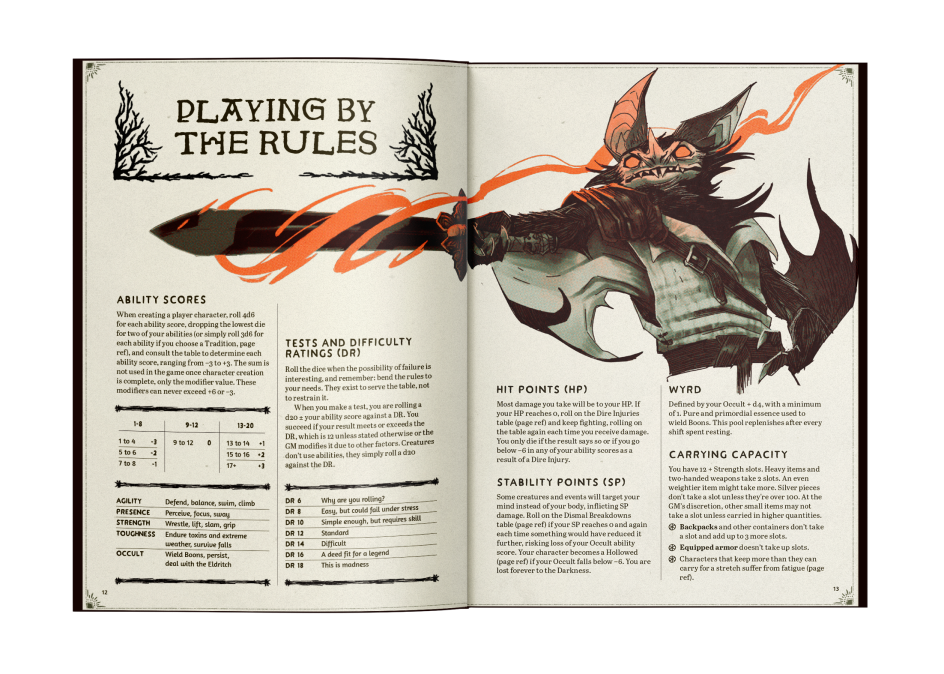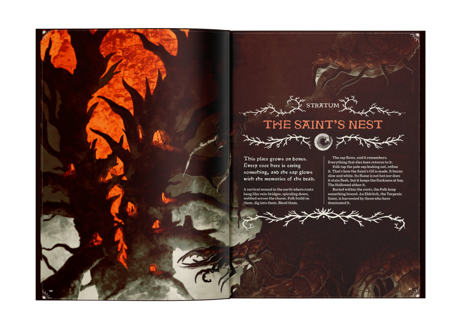 Whereas many mainstream RPGs draw heavily on Tolkien, other fantasy authors, and classical mythology, Fomoria has grown from the peculiar yet fertile soil of folk horror. "Folk horror is weird, uncomfortable, raw, forgotten, and I love every part of it. It's not just about fear, or just an aesthetic, it is about communities that have been built around a world mostly unknown to them, uncanny, and to survive, they commune with that unknown, they give it names and bargain with it to thrive," enthuses Tania Herrero.