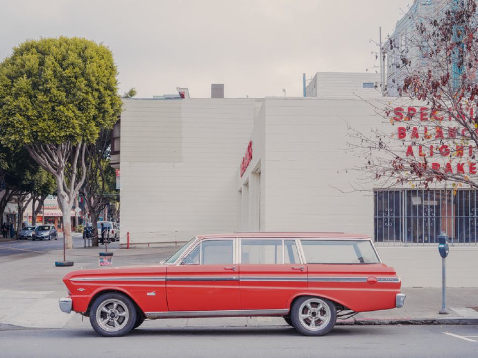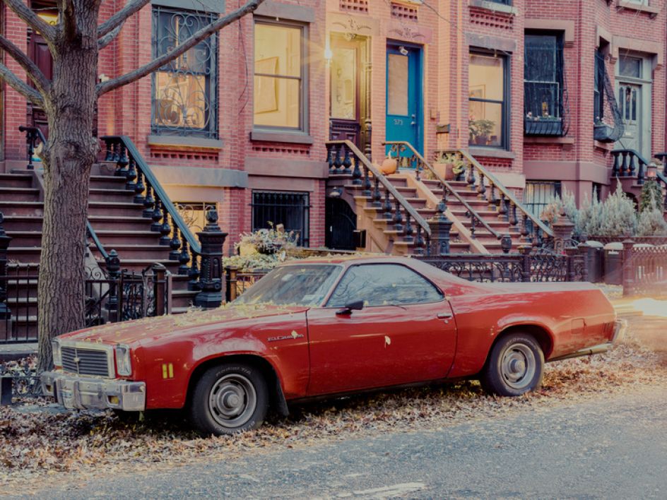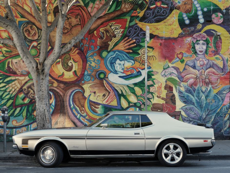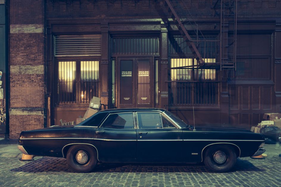Some models are modern, others are classically vintage. Some are well kept, while others have been left to rot. Weirdly, the cars seem to match their environments, either in the context of colour or overall appearance. For example, a brand new sports car is shown in front of a drive-in restaurant with neon lights, while rustier cars are parked in front of empty lots and failed businesses.