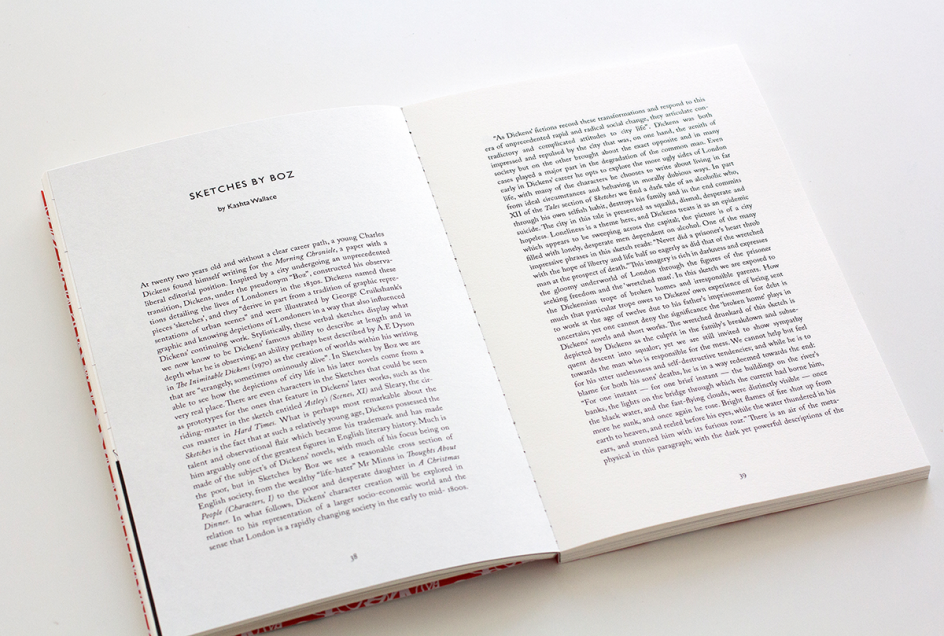 Emily Evans, a teacher at The Cass, explains that "the concept and design of the book were devised by students in the 2016/17 Visual Communication studio, Impression. They worked in teams to research, develop and pitch several designs and formats for the book, with successful ideas being developed to create the final design. The students each designed and printed an individual visual response to a particular piece of writing in the book, some of which can be seen on the chapter openers in the book."