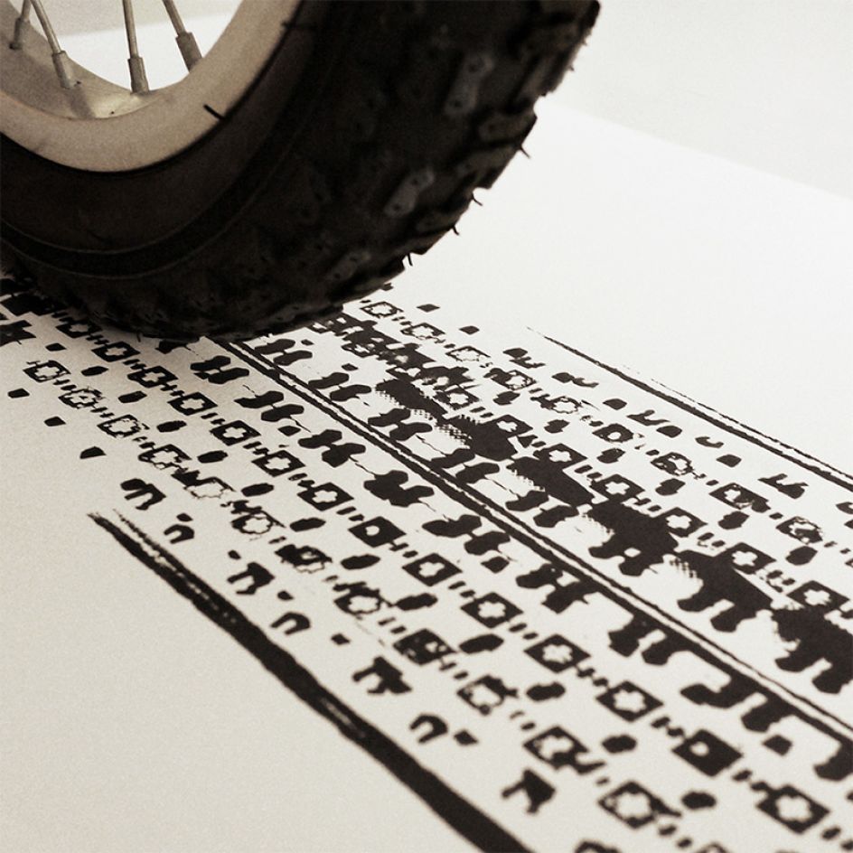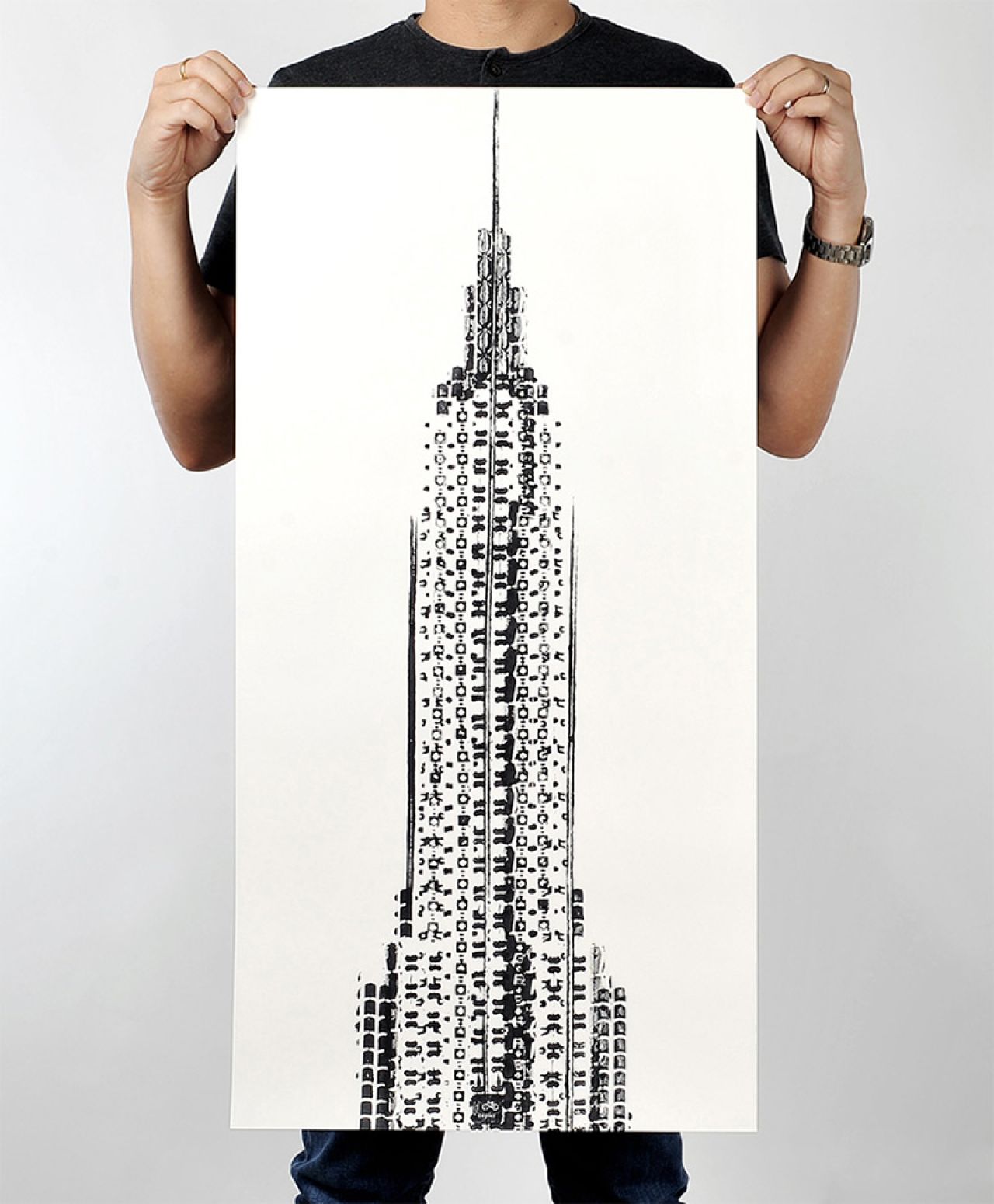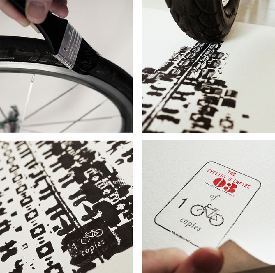 The Cyclist's Empire is the latest print to come out of 100copies. Yang used seven different kinds of bicycle tracks that were rolled onto paper to mimic the structure of the Empire State Building. If you were hoping to grab a print, you're too late. The artwork has sold out. But now you know about 100copies, you can keep an eye on future prints to add to your collection.