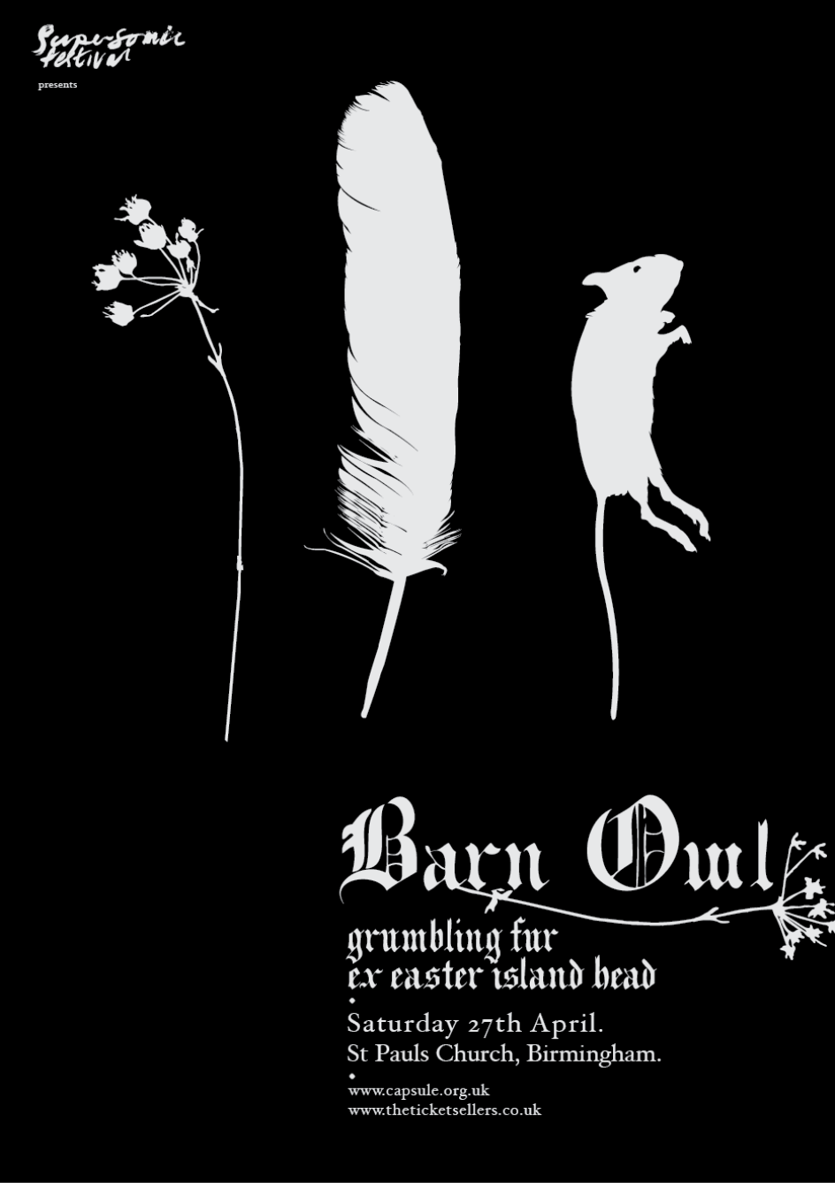 The images used on posters are from Hand’s own photographs of strange objects and folkloric artefacts. One is a meat grinder, oddly juxtaposed with pretty feathers, that the designer had clamped to the side of his computer, despite the fact he’s a vegetarian. “It’s been overflowing as my daughter kept putting feathers into it,” Hand explains. “I photographed that one night and thought, ‘that’s what it’s meant to do!’”
