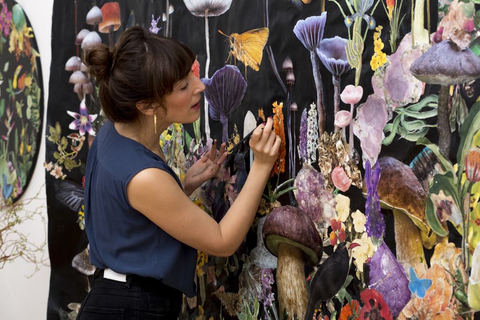 Rich with texture and detail, each composition pays tribute to her capacity to transform her archive of experiences into hallucinogenic ecosystems of their own. The lush assemblages of fauna and flora exude a visceral and intimate fragility. They speak to the mutable nature of memories as reconstructions that border on mythologies.