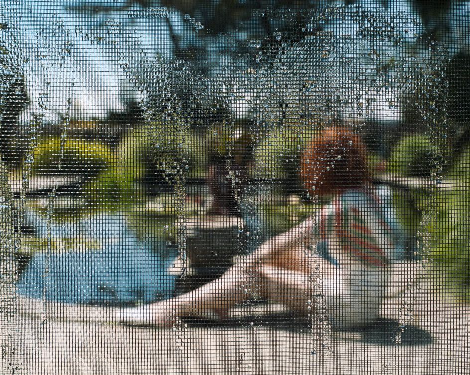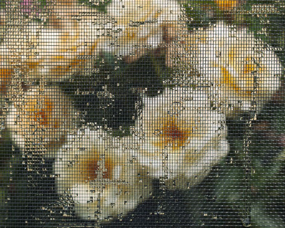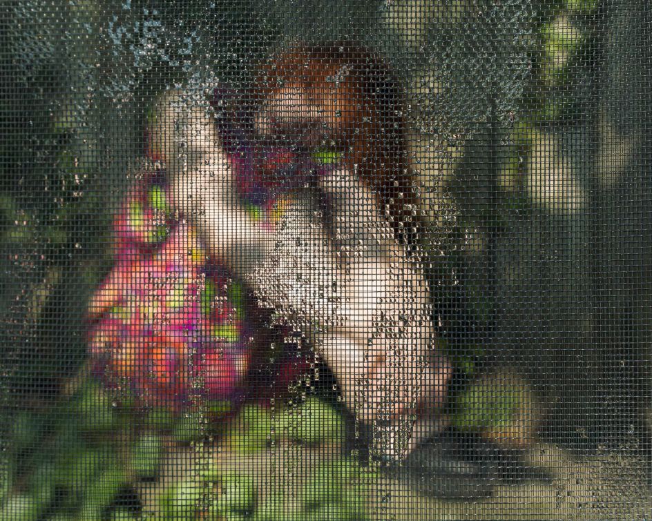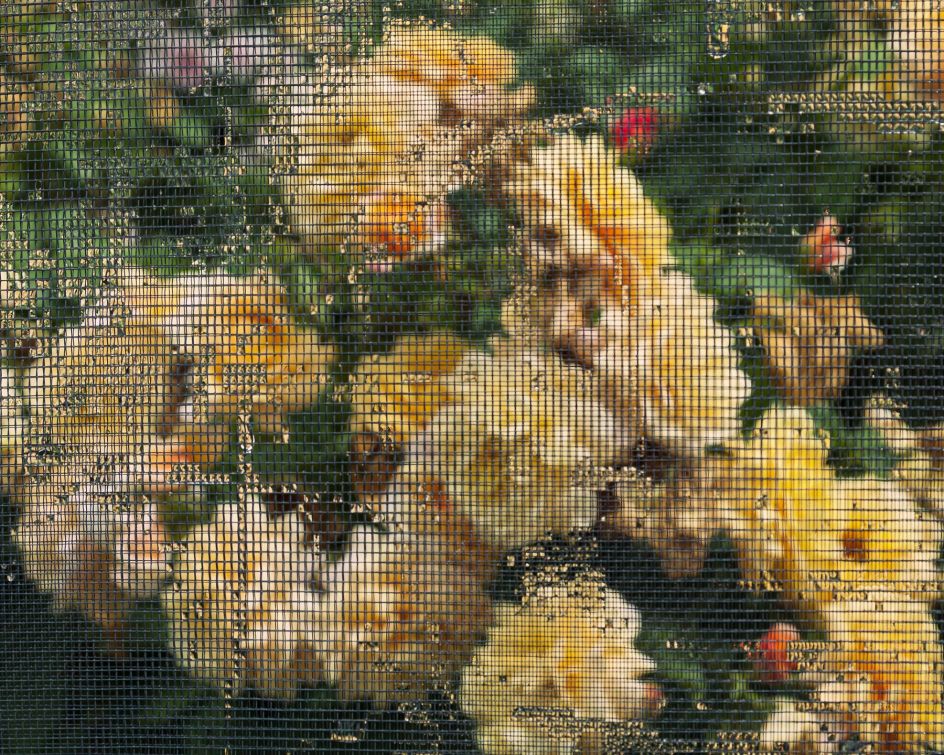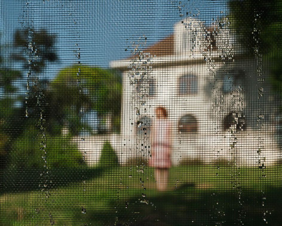 "In this body of work, I chose to focus on how that loss of information can be objectified with the use of a camera. Using a window screen as the central point of focus in each image, simple snap shots are broken down into complex blocks of colour, each becoming a building block for the bigger picture. Dashes of water obstruct bits of each scene, representing the fragments of our memories lost to time."