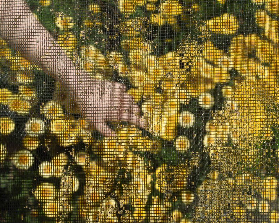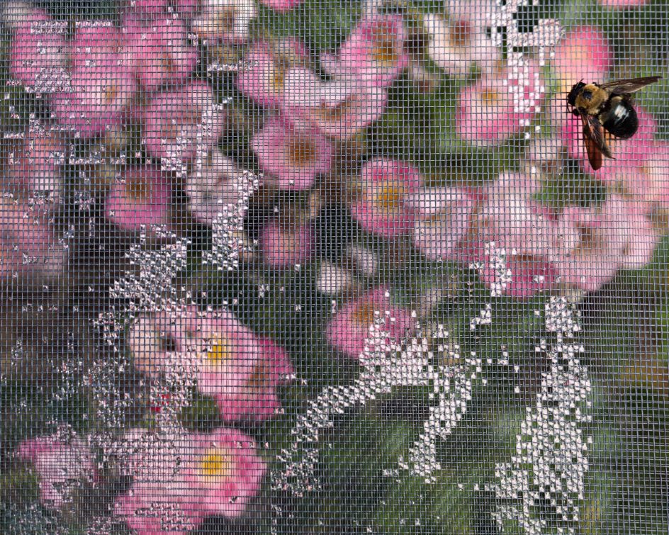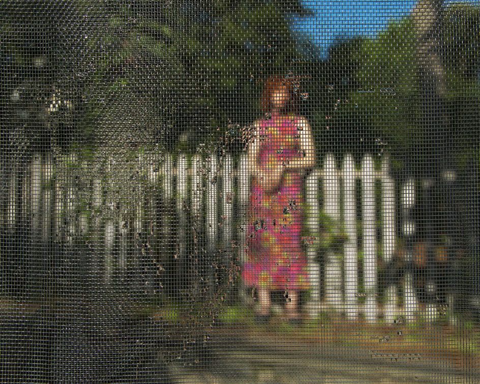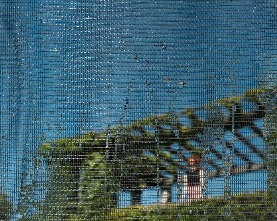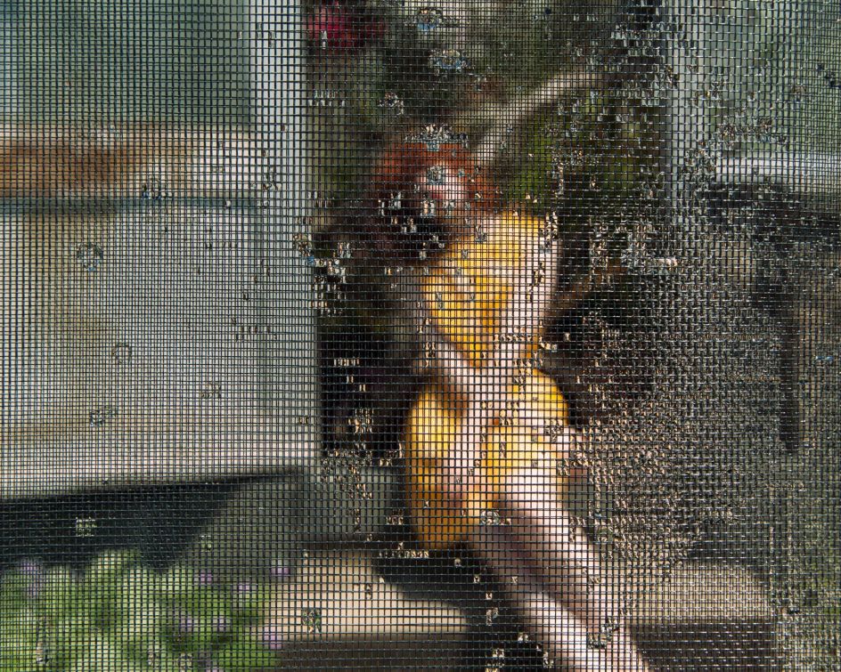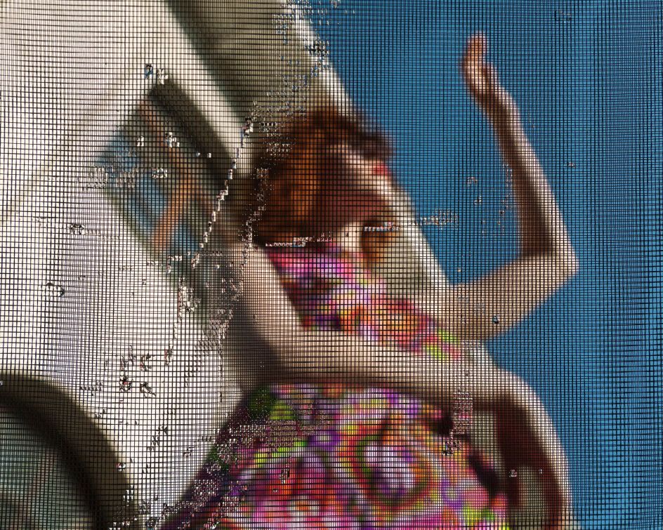 "In this body of work, I chose to focus on how that loss of information can be objectified with the use of a camera. Using a window screen as the central point of focus in each image, simple snap shots are broken down into complex blocks of colour, each becoming a building block for the bigger picture. Dashes of water obstruct bits of each scene, representing the fragments of our memories lost to time."