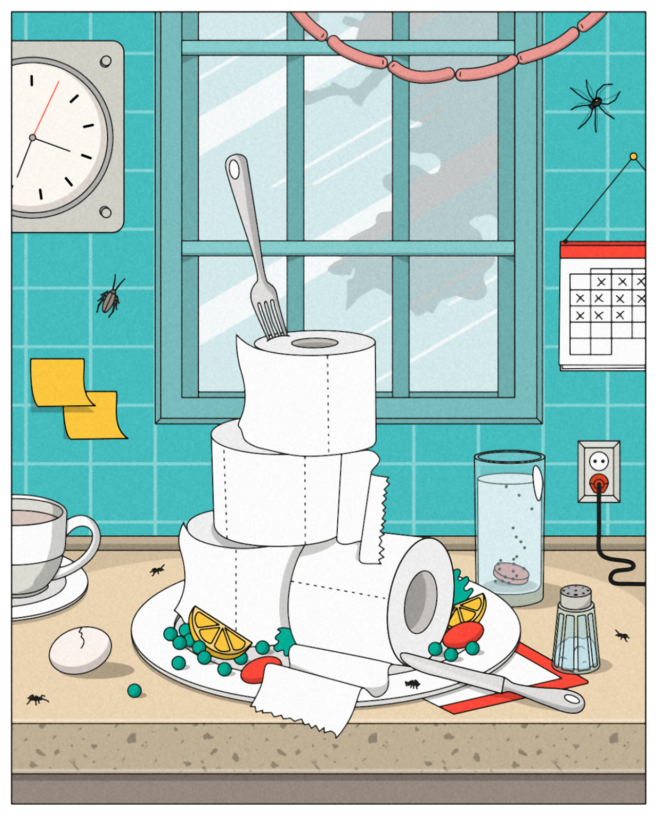 The panic buying of toilet roll. Not being able to leave our homes. The reliance on alcohol, maybe just a little too much. These are just some of the things we've come to accept as the "new normal" following weeks of lockdown, and they've been illustrated for a new series by Mariano Pascual.