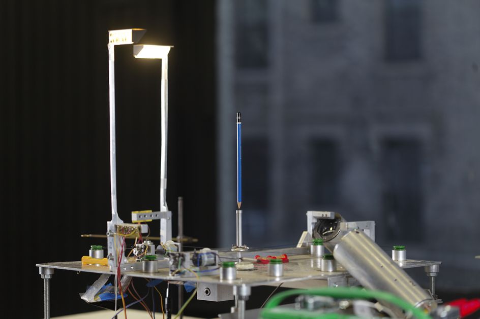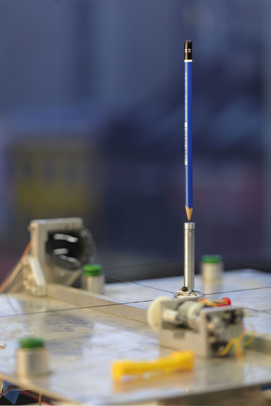 In Ω = 1, 2003, Pippin presents a pencil balancing on its tip as if by magic which is often used as a metaphor in physics to describe the current state of the universe neither collapsing inward on itself nor flying outward. Pippin’s ingenious solution took 10 years of trial and error to achieve.
