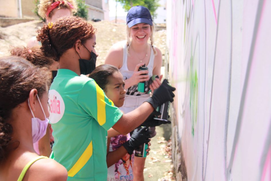 In February, Graffiti Life artist Sophie Meseg travelled to Brazil with filmmaker Emily Hatter to create the murals with Meninadança, which works with some of the most vulnerable girls in the world, at risk from, or victims of, child sexual exploitation.