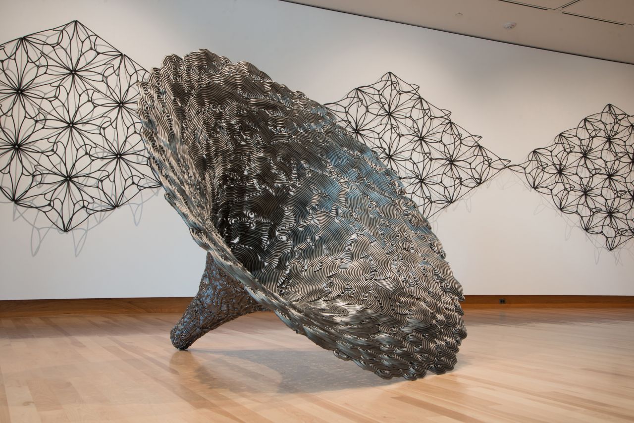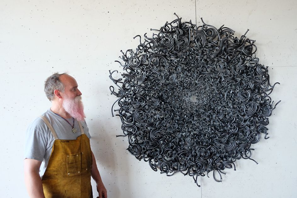 There is now an immediacy to the notion of mutation as a dominant element. His work always is rooted in the materiality of nails and common spikes, but in this new body of work the steel is bent to create vivid and elegant abstractions such as “Infinity Pool” and “Common Mirage".