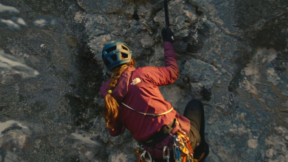 Climber, star of the Oscar-winning film Free Solo and The North Face athlete, Alex Honnold, lends his voice to the spot until the camera lands on extreme climber Caroline Ciavaldinian as she makes her way up the face of a mountain. The camera eventually pans to The North Face logo on the back of her jacket, reinforcing the campaign's message.
