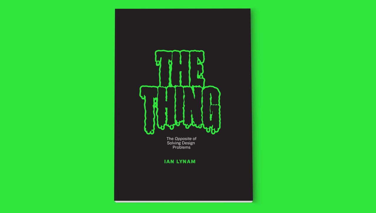 Positing that a "thing" is the "opposite of solving a design problem", Lynam recently published a tome called—you got it—The Thing, an 88-page zine that mixes graphic design history, memoir, object studies, "dismembered limbs, virgin tears, and blood sacrifice applied to some of the silkiest Japanese papers available," in his words.