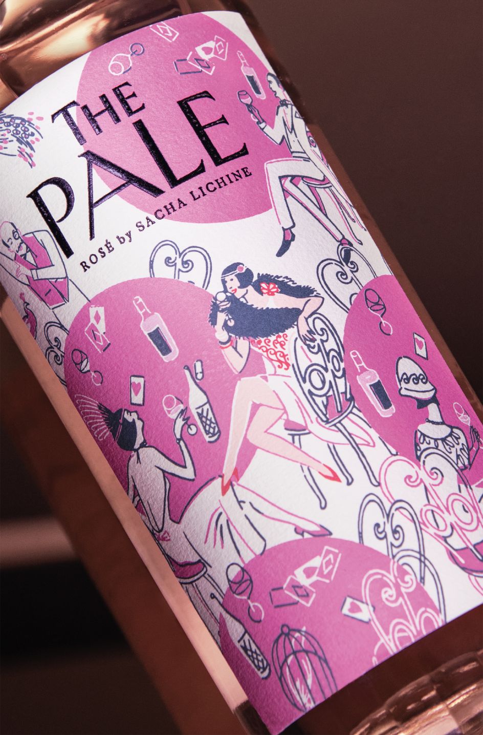 Living up to its name, The Pale is exceptionally pale in colour, so Design Bridge chose a striking hot pink and off-white colour palette for the visual identity to emphasise the wine's unique lightness by comparison. Says Design Director Natalie Hughes: "We hand-illustrated a vibrant soirée scene full of eclectic elements for people to discover. From peacocks to playing cards, our unique design offers drinkers a playful journey of discovery every time they pick up the bottle."