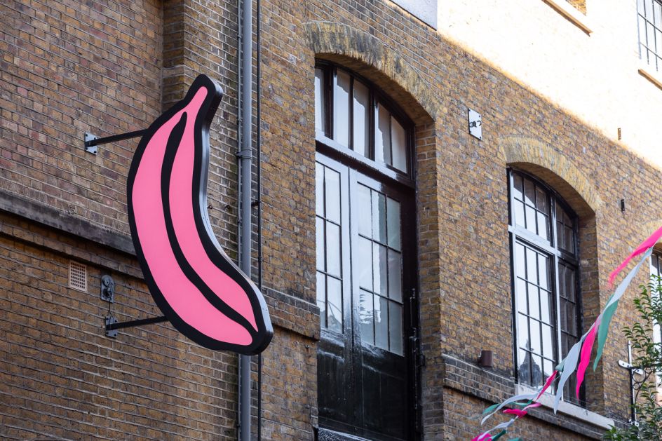 The banana icon is used across signage, marketing and the market’s online presence, and was seen in the hoardings during the renovation of the building to "create some curiosity around Covent Garden, and begin to establish a strong, iconic identity for the experience," says The Plant. The banana was also made into a huge sculptural piece inside the market, designed by The Plant "to be sat on, touched and Instagrammed," the agency says. Outside the Earlham Street entrance visitors are greeted by two large banana signs—one in vibrant pink, the other a more traditional yellow—"aimed at establishing a landmark for Covent Garden and the market."