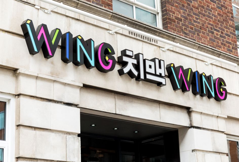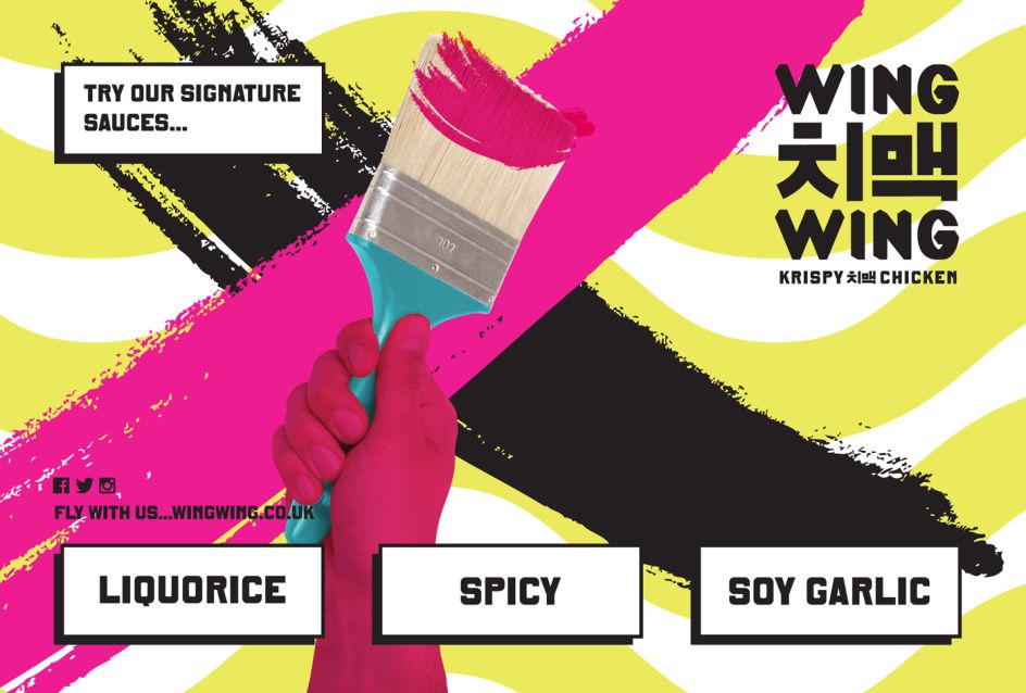 The Plant drew on the chicken and beer joints of Korea and their offspring on New York’s Lower East Side in creating the brilliant branding and interiors for Wing Wing, a new fast food spot in central London.