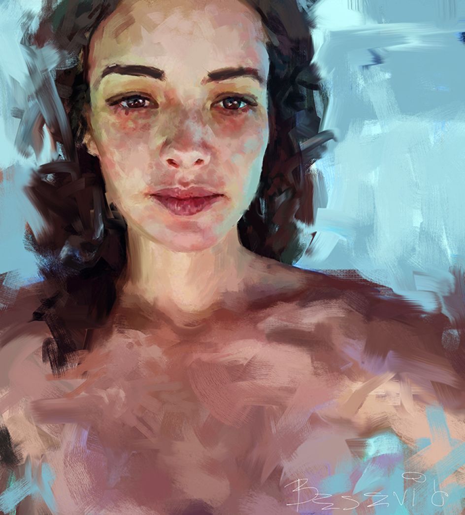 She experiments a lot, she says, and that leads to constant changes in her style. "Sometimes I paint more expressive work, and sometimes more illustrative and neat work. What I care about most is the face and the expression. That's what I'd like the viewer to focus on most of all, so these areas are often painted with the most detail and attention, while the rest disappears in wider and more expressive brush strokes. I think these contrasts give dynamic and life to the piece."
