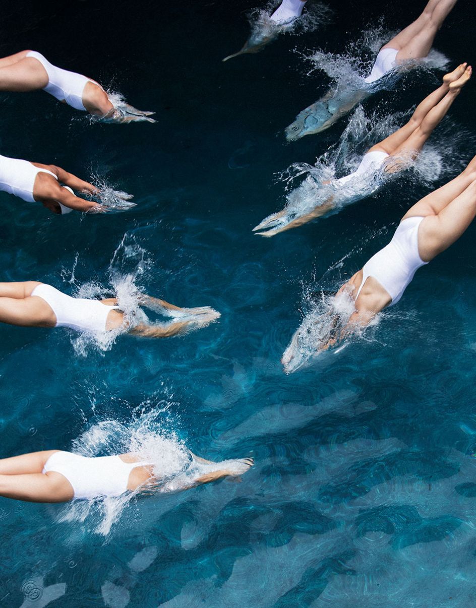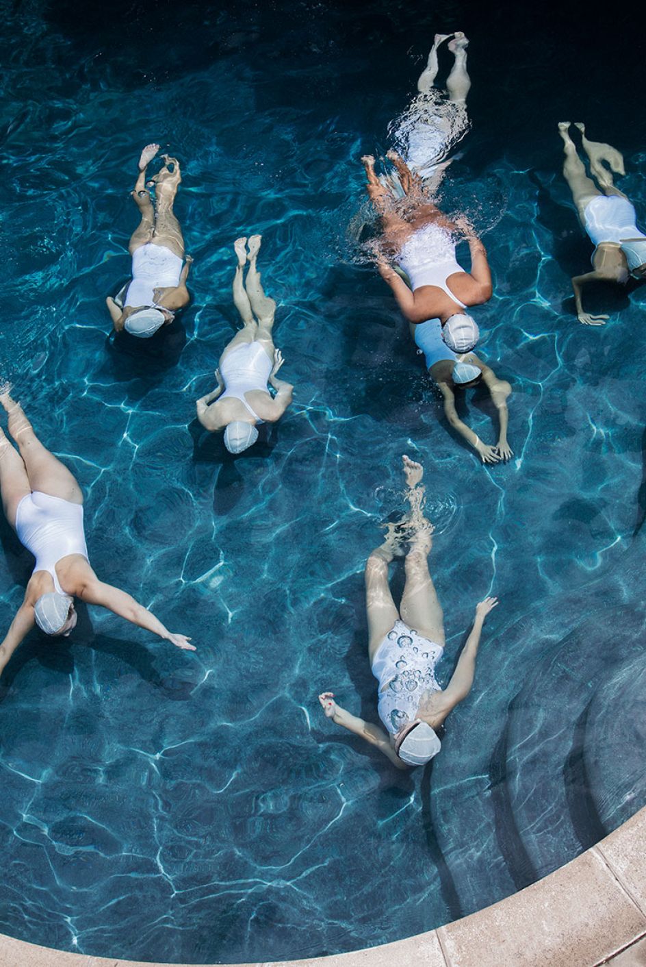 The Swimmers was created by Swedish photographer Emma Hartvig under a hot Californian sun in Los Angeles, following a request to collaborate with professional synchronised swimmers The Aqualillies.