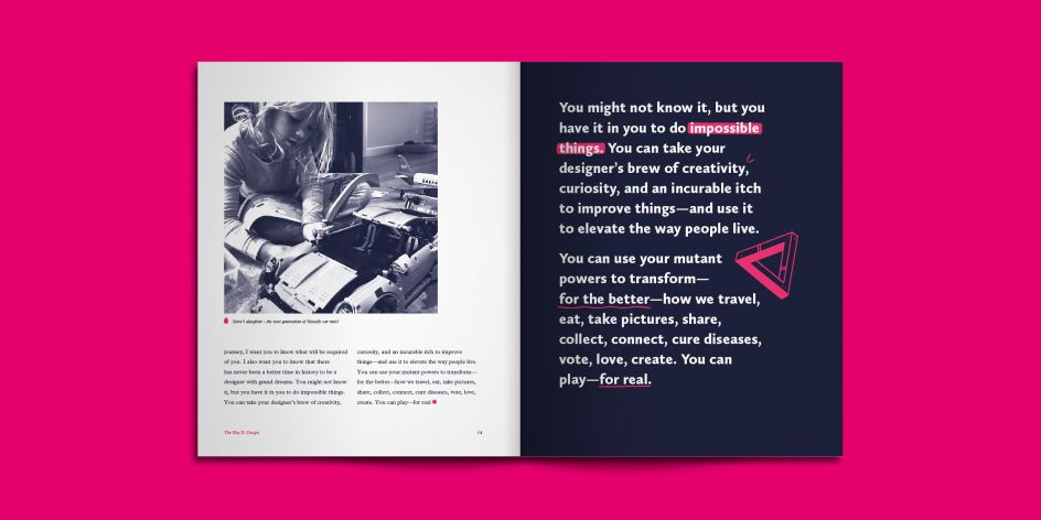 In its first month, The Way to Design attracted over 30,000 readers and 5,000 downloads. And it received praise from industry heavyweights such as Joe Gebbia, co-founder and Chief Product Officer of Airbnb, who called it "...the first practical and inspirational guide for designers who want to create positive change in the world."