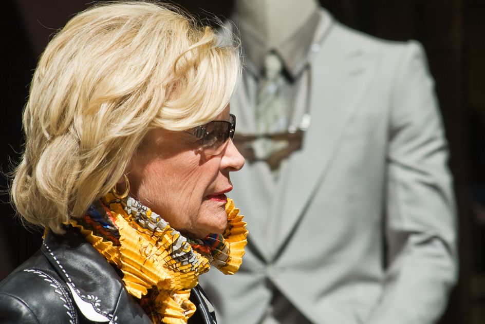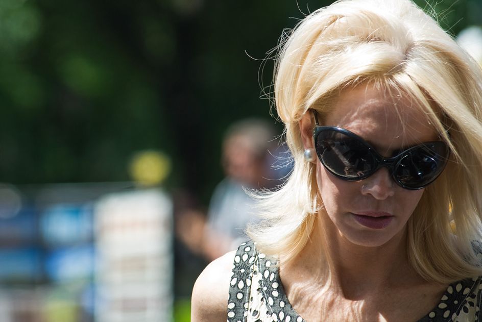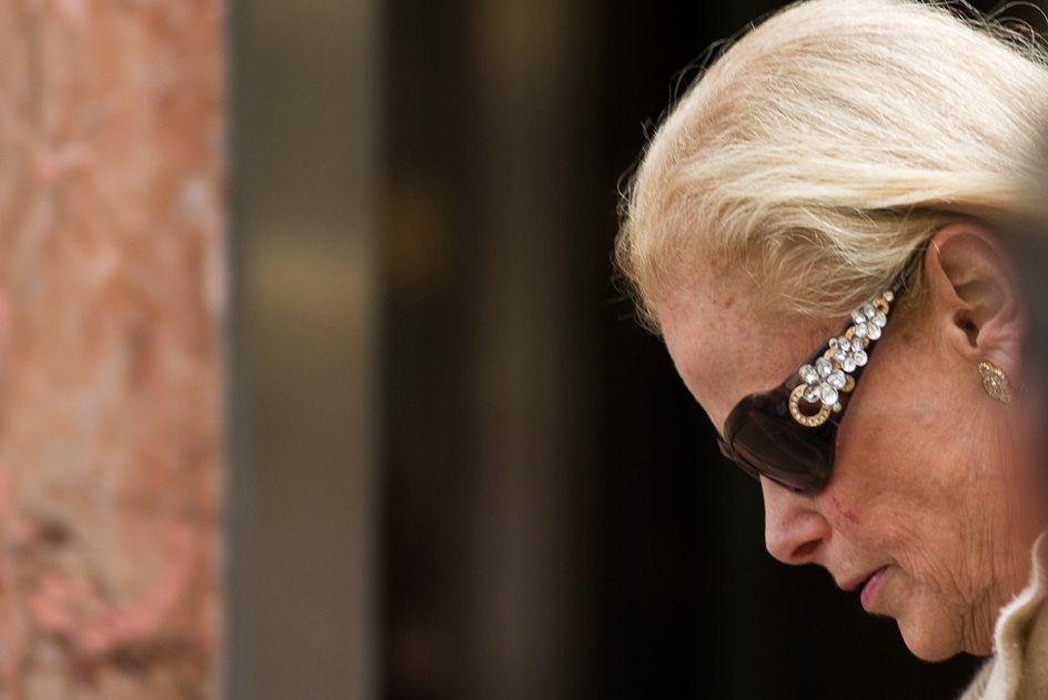 "Behind their jewellery and their sunglasses these women 'of a certain age' seem to exist in their own bubble of leisure while the hustle and bustle of working New Yorkers and tourists swirl by. With these images my intention is to capture these woman seemingly in their own wealthy world, insulated from the rest of us."