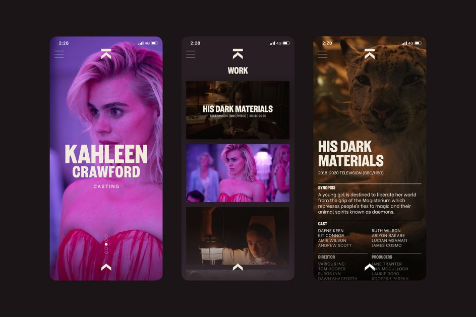The concept of the identity was to reflect the scrolling credits seen at the end of a film or TV show. "This gave us a direct link to casting subject matter, whilst also giving us a strong typographic approach to play with across the brand," Graeme adds.