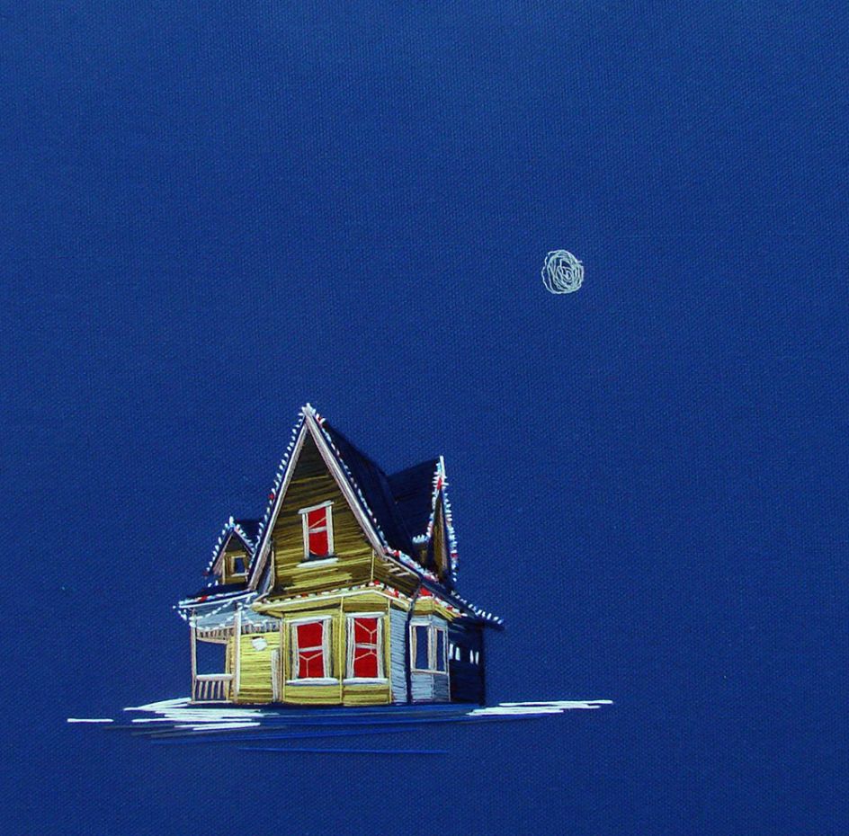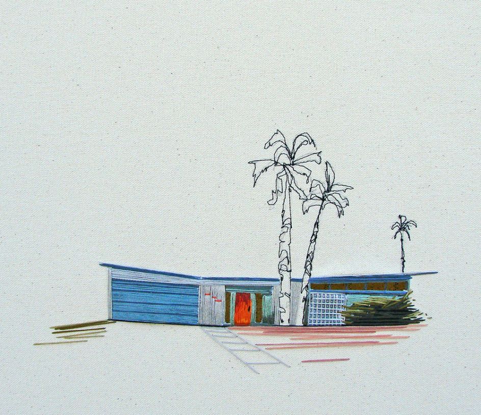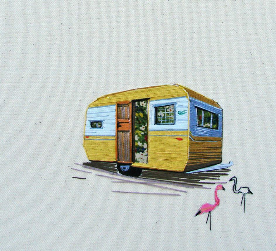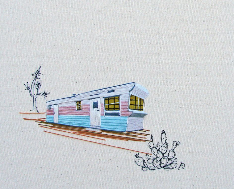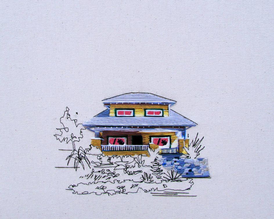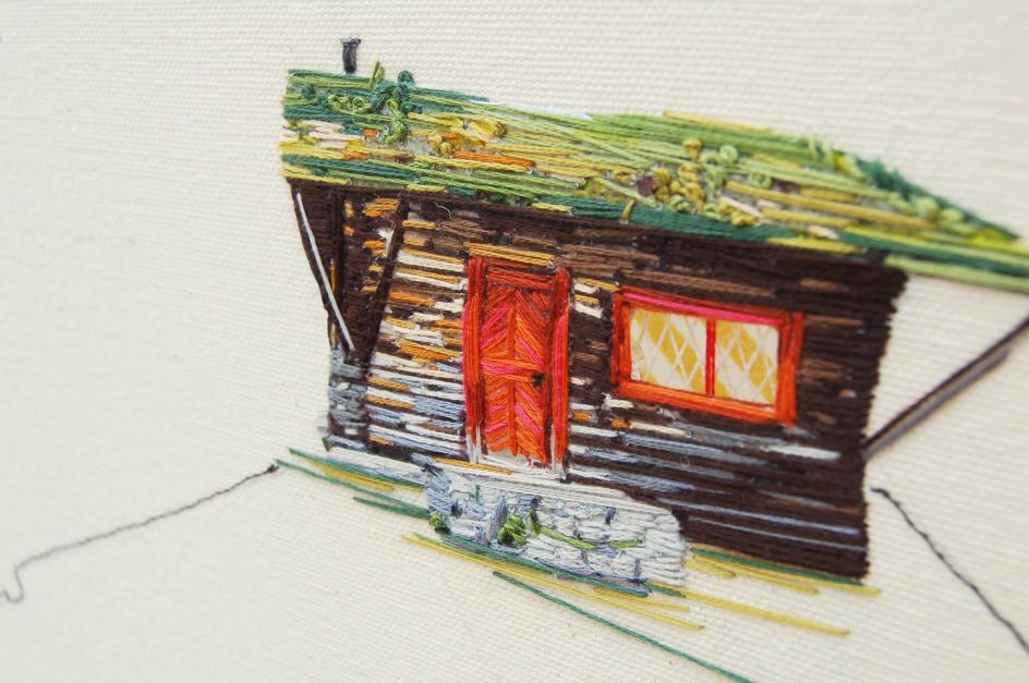 Stephanie K Clark considers herself to be a painter, but someone who paints with thread. Based in Salt Lake City, she creates beautiful embroidered artworks of tiny dwellings, using only swatches of muted cloth and spools of colourful thread.