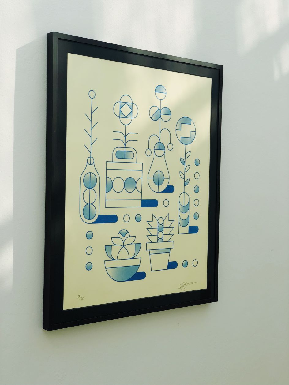 We love how he blends bold colour, line-work and geometry to draw simple things and clean compositions. You can even purchase some of his creations via his online shop. On a sunny August day in Amsterdam, we chatted to Tim about his life, his creativity and his career so far.