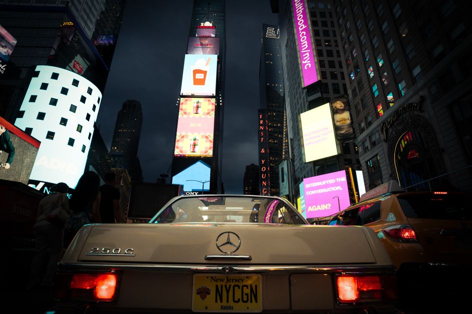 For this particular series, Times Square Reflections, Stefano wanders around one of New York City's most famous landmarks at night, capturing the bright lights reflected in the wet streets. In some cases, he spots a classic American car or yellow taxi cab and finds a way to snap the reflection of the surrounding neon billboards in the windscreens. It's a series that paints a classic picture of the city that never sleeps; one that looks warm and inviting, despite the dreary weather.