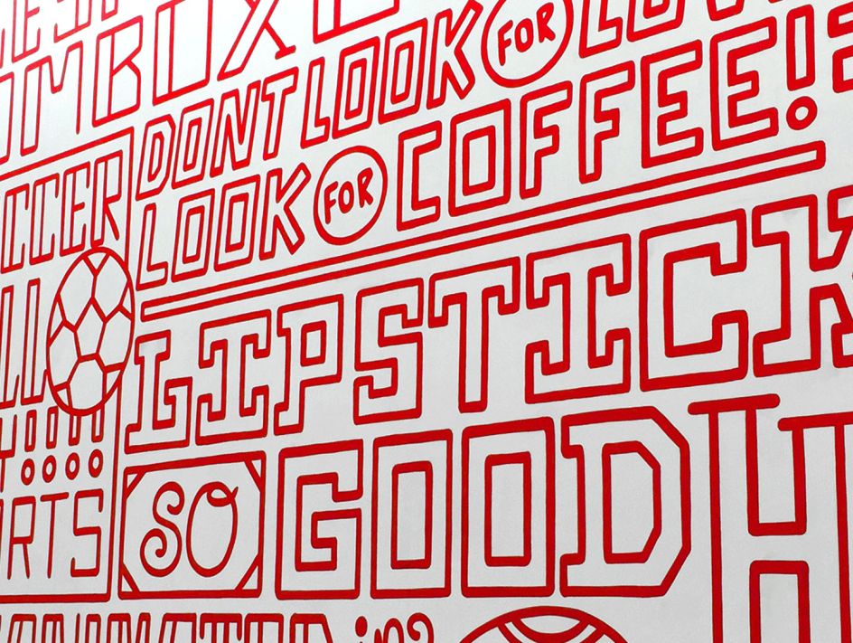 New York-based designer, illustrator and all round good bloke Timothy Goodman has been keeping busy of late, creating (amongst other projects) a series of vast murals. Bearing his distinctive, playful hand-drawn type, the works are text-based pieces bearing copy also created by Goodman; and here, we’re showing some snippets of the three murals he created for New York’s Tribeca Target store and one for booze brand Anheuser-Busch's offices in NYC.