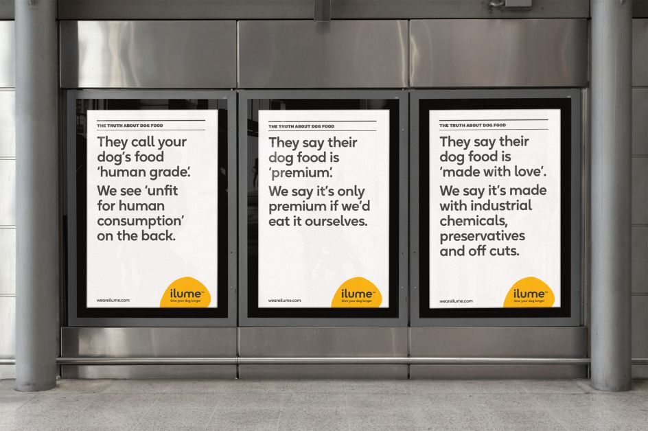 As well as Stay Longer, the PR campaign includes outdoor posters that challenge perceptions of how dog food is made. It's supported by PR, an audio partnership with Nova, digital displays and social, which outline how Ilume extends the lives of dogs. The ultimate aim is that dog owners will head on over to Ilume and sign up for a free trial of its services.