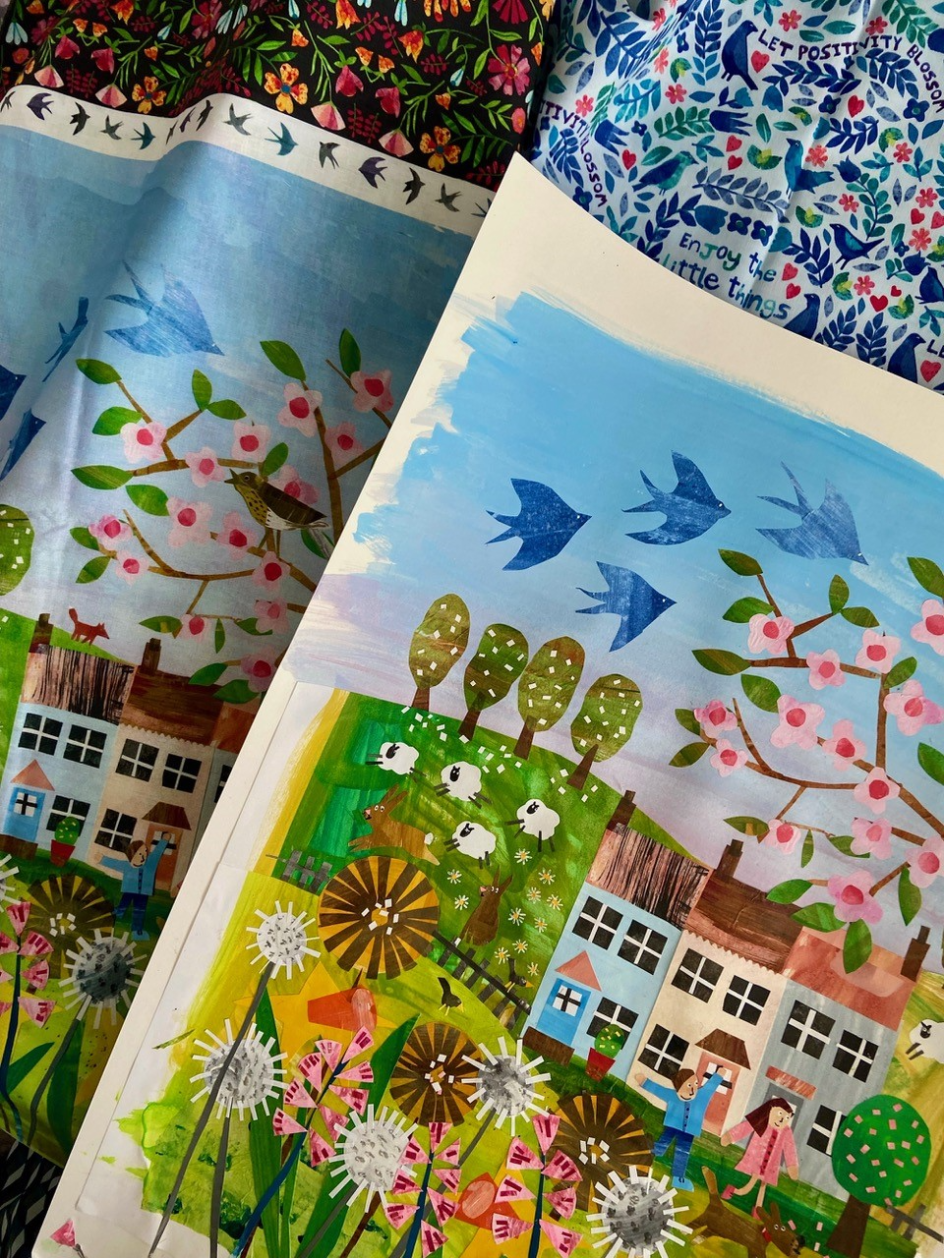 "I love the physical aspect of mixing the paints and creating the textures, and from that, being able to produce an image from cut-up pieces of coloured paper," she explains.
