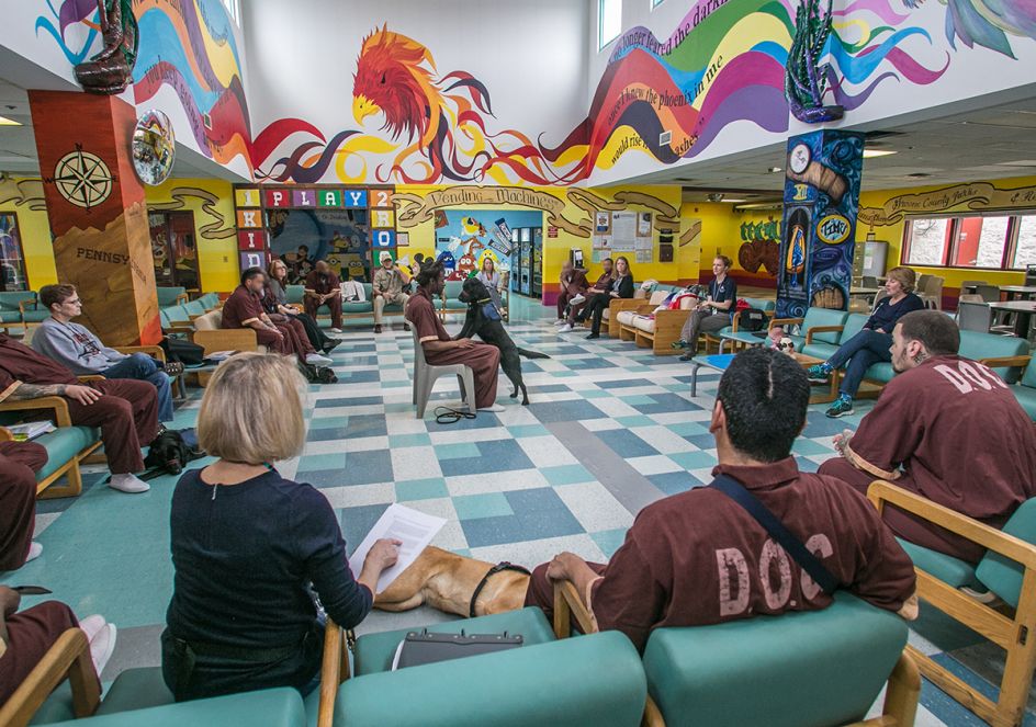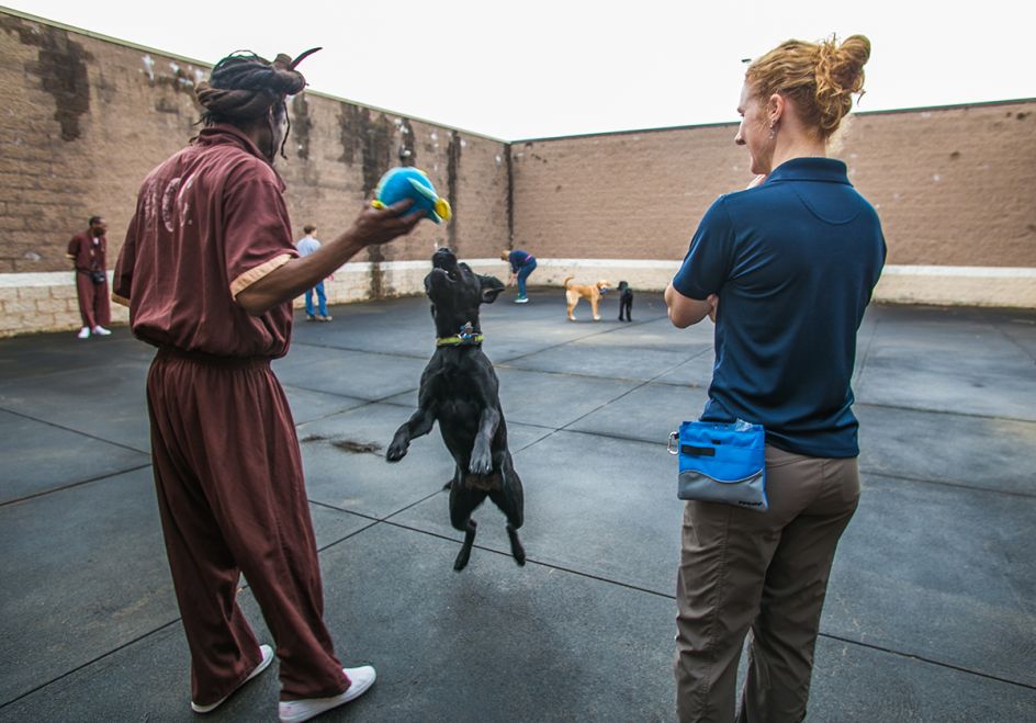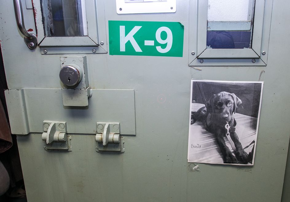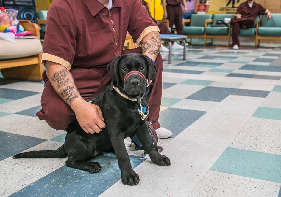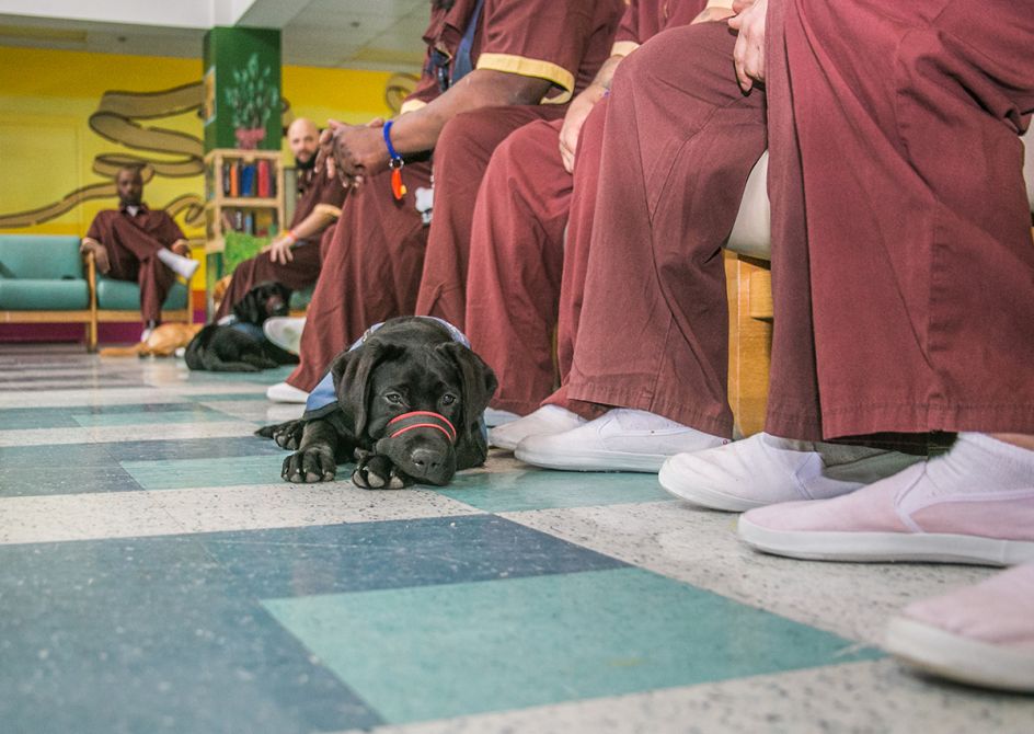 "The dogs are impeccably trained, reacting instantly to commands given by their handlers. Treats were placed on the floor to tempt them out of position. No one budges, and the exercise concludes with zero mistakes. Expressions of pride and approval can be seen upon the inmate's faces. It is clear they take their work seriously."