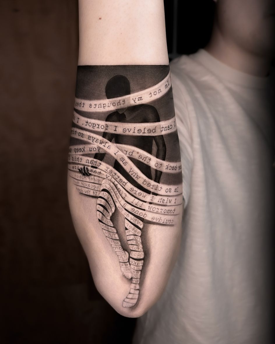 Travis is a Brooklyn-based tattoo artist who works exclusively in monochrome, producing surrealist compositions that look less like tattoos and more like stills from films yet to be made.