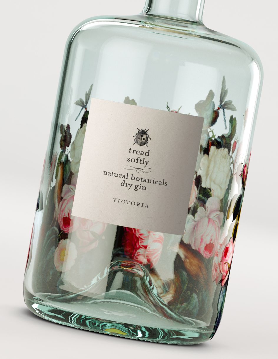The company behind Tread Softly, Fourth Wave Wine Partners, approached Denomination earlier this year with a brief that would help it disrupt the gin category and highlight Tread Softly's sustainability focus. Moving away from what it believes is a "more masculine style of branding" in this part of the market, Denomination has created something that has more of a "gently powerful presence on the shelf". It also taps into a growing appetite among consumers for brands that care about the planet with an innovative approach to labelling and packaging.